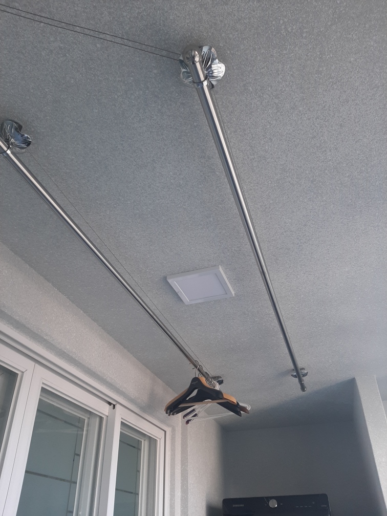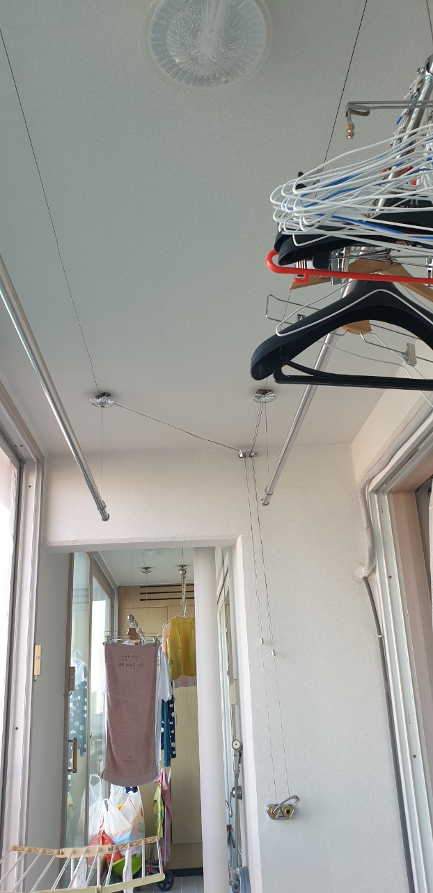 현재 1주일정도 사용해보았는데, 생각했던데로 베란다에 천정형 건조대가 공간활용성이 매우 좋았습니다.