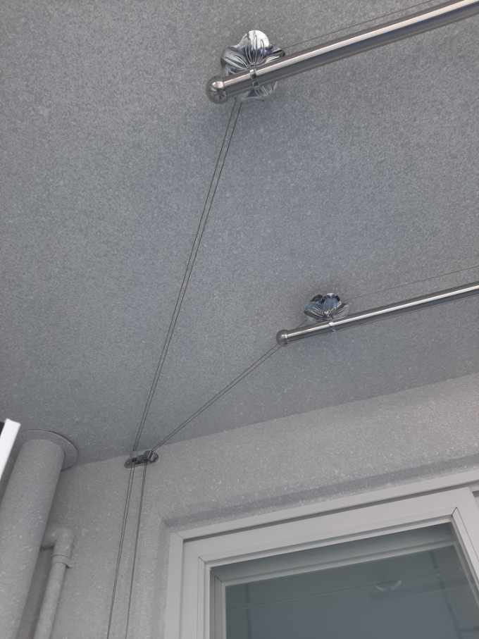설치해주신 기사님 말씀에 의하면 50KG까지 버티는 와이어라고 하니, 그정도까진 아니더라도 실제 빨래건조시에는 불안하지 않을 것 같습니다.